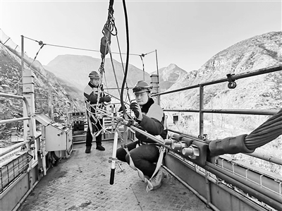 在太原北供电车间,供电运行工区工作人员正在对铁路接触网进行风险隐患排查。为确保冬季低温环境下铁路接触网供电设备安全运行,春运开始前,中国铁路太原局集团有限公司太原供电段太原北供电车间组织3个供电运行工区,全面排查消除关键供电设备安全隐患,夯实春运供电设备安全运行基础。科技日报记者都芃/文 王瑶/摄