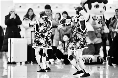 在江西景德镇北站,旅客观看人形机器人表演。江西景德镇北站北候车大厅内暖意融融,锣鼓声与欢笑声交织,一场非遗大集悄然启幕,让高铁站变身中华传统文化传播驿站。科技日报记者何亮/文 王超摄