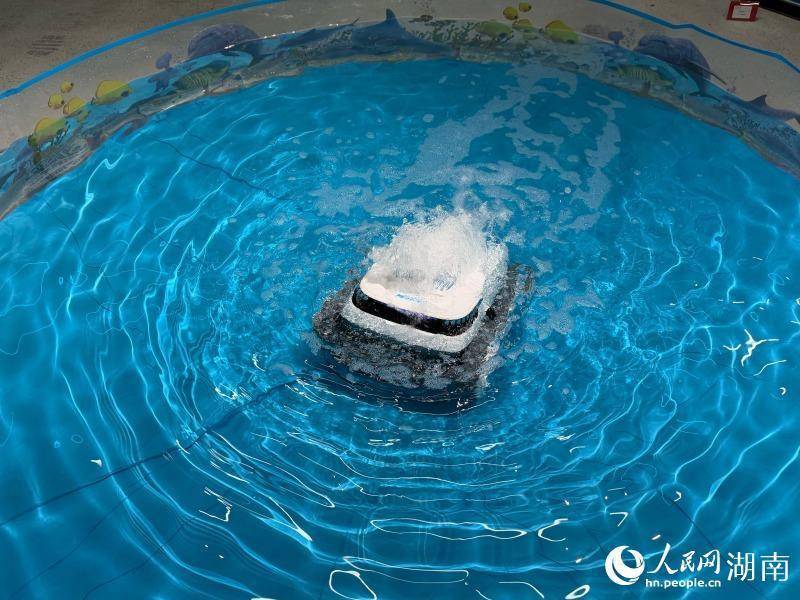 机器人对水池进行清洗。人民网记者 林洛頫摄